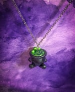 Necklace with a hand made polymer clay charm resembling a witch's cauldron!