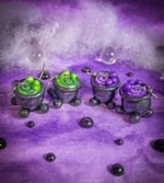Hand made polymer clay earrings made to resemble witch's cauldrons! Comes in 2 different colors! Potion Purple, and Cat's Eye Green!